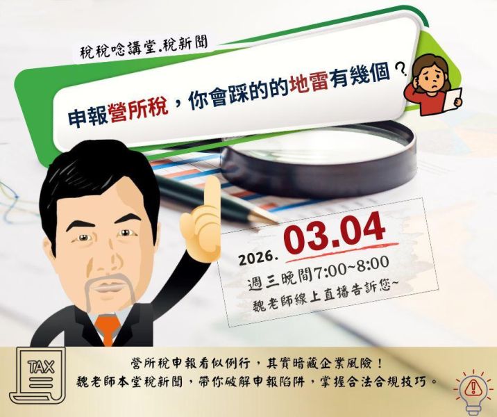 受保護的內容: (稅新聞講義)0304 申報營所稅,你會踩的的地雷有幾個? 稅新聞 / 2026-03-04 受密碼保護的文章不會產生內容摘要。 受保護的內容: (稅新聞講義)0304 申報營所稅,你會踩的的地雷有幾個? 閱讀全文 »